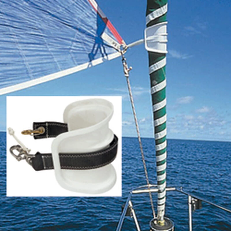 It prevents chafing the tack line on the lifelines, bending stanchions and gives you maximum control over the luff of the spinnaker. Its snap shackle allows you to “blow the spinnaker tack” before lowering the Spinnaker Sleeve. Combine the Tacker with the Spinnaker Sleeve, and flying the spinnaker becomes a breeze.