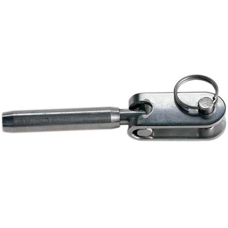 Toggle terminals provide movement for lifeline connections to prevent putting adverse stain on the wire. These toggle jaws feature a toggle nut design and are constructed of 316 stainless steel to provide an excellent blend of strength and corrosion resistance. Designed to be hand crimped using a proper crimping tool each toggle jaw swage is sized for a specific wire diameter.