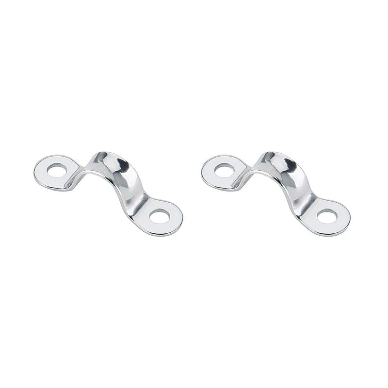 Eyestraps are useful accessories. They form light-duty mounting bases for blocks, serve as lash-down points, and can be used for fairleads.
