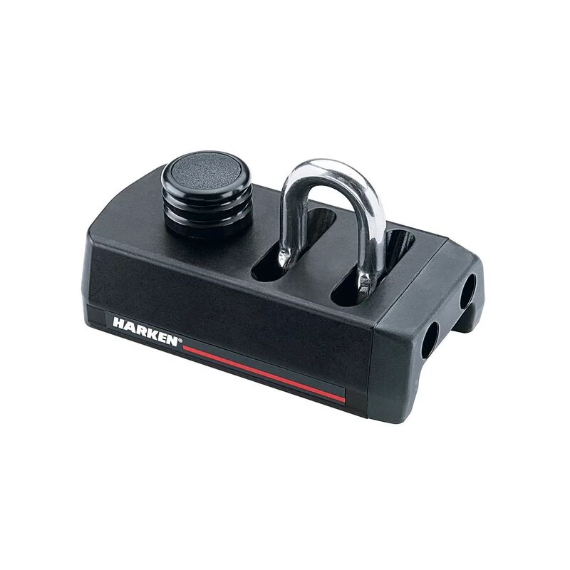Adjustable hardcoat-anodized aluminum pinstop end controls limit car movement on the track.