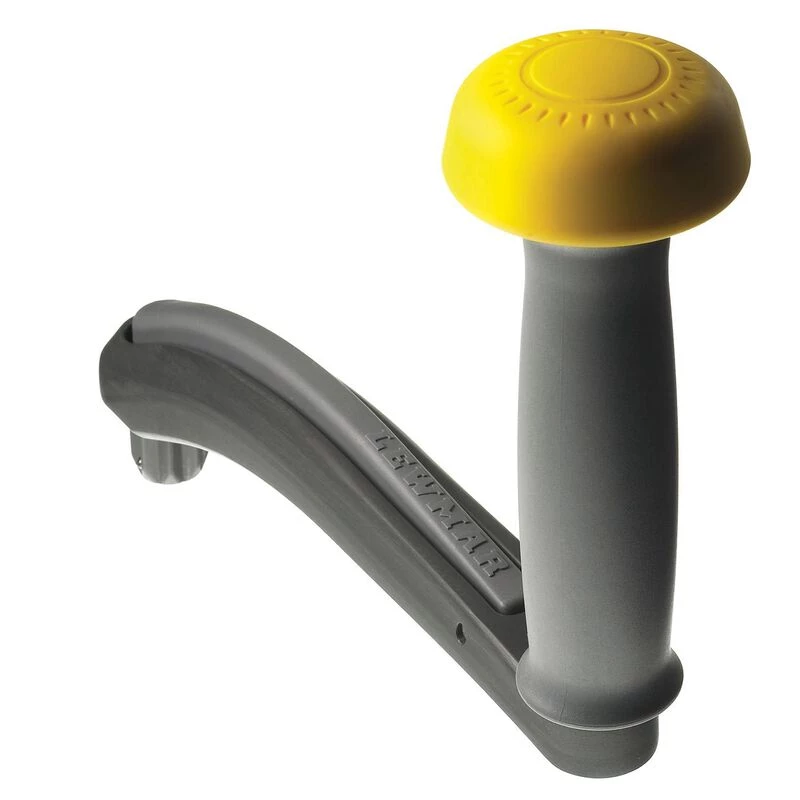 Save valuable time in heated mark-roundings or tacking duels with this innovative, high strength, marine-grade alloy and fiber-filled composite winch handle. Its patented “OneTouch” lock-in mechanism offers fast, one-handed winch exit and entry, so you spend less time fiddling with a sticky locking lever and more time sailing. Just squeeze the release button (which runs the entire length of the handle) and pull to unlock in one quick, easy motion. To insert, simply squeeze the handle as you place it into the winch. Ball bearing handle. Three-year warranty.