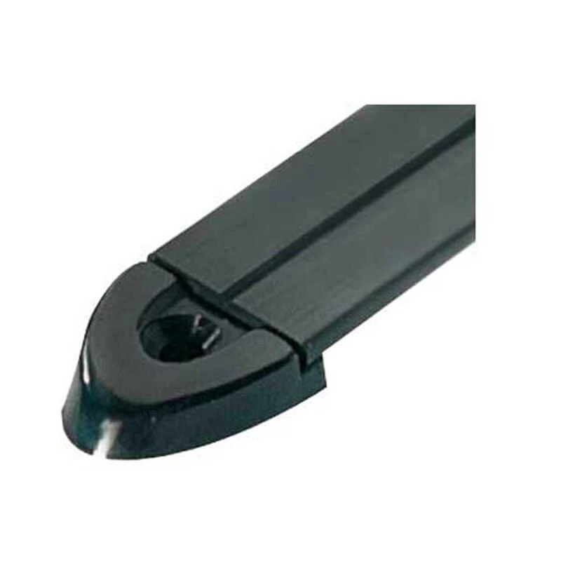 Plastic track end for Series 25 Jib Lead System. For small keelboats and sportboats, T-track jib leads blend performance and functionality in a simple, efficient package. Composite slide bodies with plunger stops allow quick and easy manual adjustment.Lightweight: Virtually all metal components replaced with high-tech polymers and fiber equivalents. Car design modelled and optimized using finite element analysis and rapid prototyping techniques to achieve maximum strength-to-weight. Orbit Block™ models use a Dyneema® Link, ten times stronger and lighter than steel, to provide the articulated connection between block and car.Integrated Functionality: Two-piece composite car body delivers low friction on the alloy track without needing separate inserts, and provides strength without weight and corrosion drawbacks of metal parts. Integrated becket at forward end of the car enables 2:1 sheet systems. Removable threaded pin allows fitting of alternate blocks and accessories.Low Profile and Compact: Sleek styling and positioning of the attachment pin provide a low lead aft for the lead block. Dyneema® Link allows full articulation. Plunger stop button has a flush finish and the contoured form of the car eliminates the chance of lines and sails becoming snagged.Precise Adjustment: Easy one-handed adjustment. The toggle is located at the rear of the car for easy access from the cockpit. Arrow located on the side indicates the position of the stop for repeatable settings. Racing Track has 25mm (63/64″) stop hole spacing for even more precise control of the car position and sheeting angle.