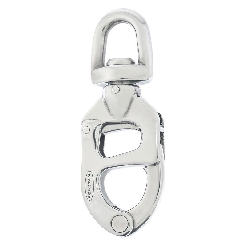 Ronstan’s Series 100, small bail Triggersnap™ shackle allows quick and intuitive one-handed operation for attachment and release of the snap shackle. Release under load is easily accomplished by using a spike to safely actuate the trigger. Heat treated, precision investment cast 15.5PH stainless steel. All Triggersnap™ shackles are individually proof-load tested and stamped with a production code for traceability.