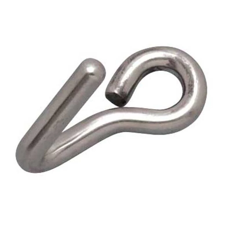 Stainless steel hook with closed perpendicular eye. Formed stainless steel with long stem for secure insertion into grommets. Eye dia.:1/2″.